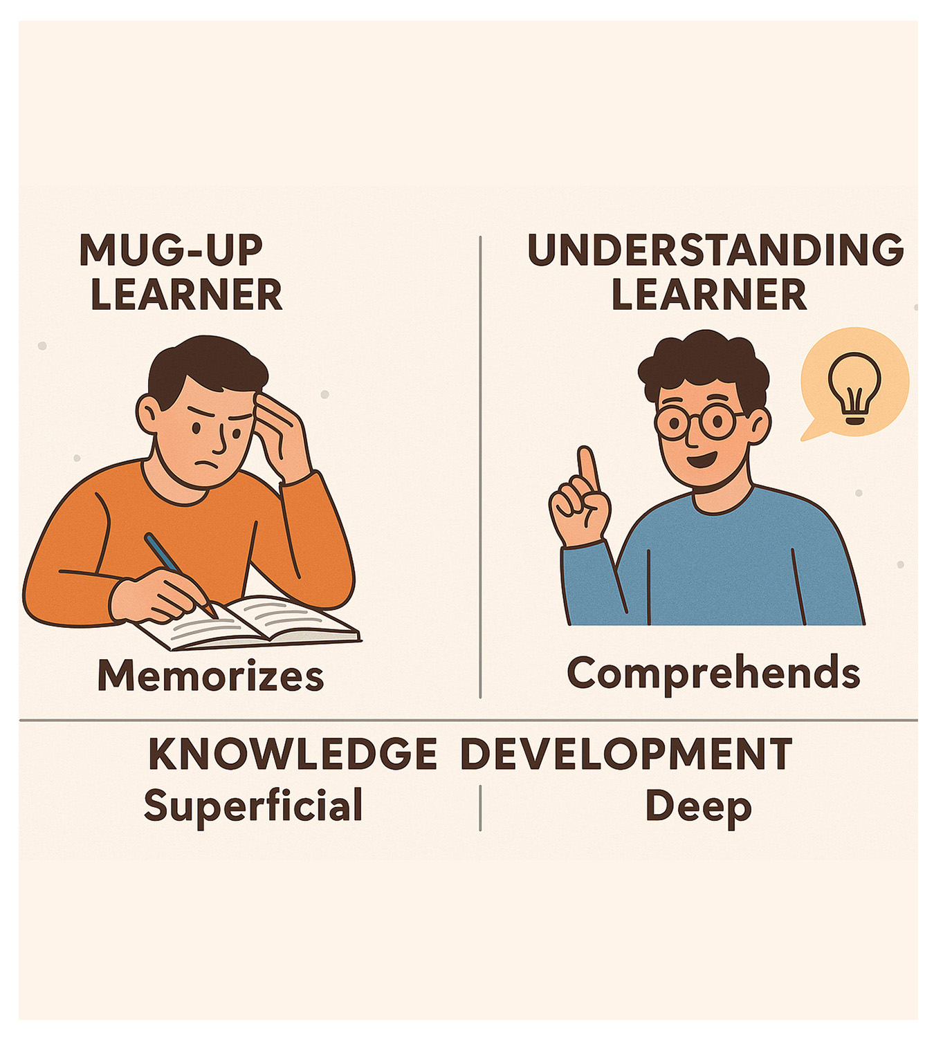 A Clear Comparison Between Mug-Up Learner And Understanding Learner, Along With How Each Type Influences Knowledge Development: