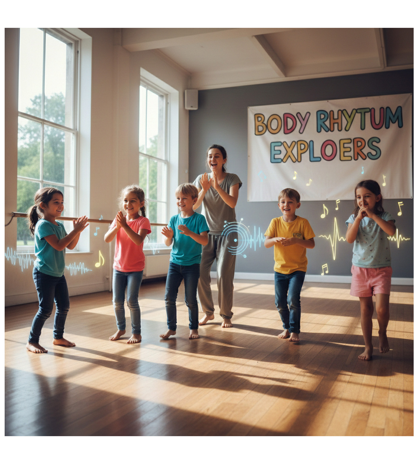 Body Rhythm Percussion Introduces Children To Music By Using Their Own Bodies As Instruments. Through Clapping, Stomping, Snapping, And Tapping, Kids Explore Rhythm, Coordination, And Sound In A Playful Way. This Activity Builds Musical Awareness While Encouraging Movement, Listening Skills, And Creativity. It Is Accessible, Energetic, And Fun, Helping Children Develop Confidence, Teamwork, And A Strong Sense Of Beat Without Needing Any Instruments. Together They Learn Timing, Focus, And Joyful Musical Expression Every Single Session.