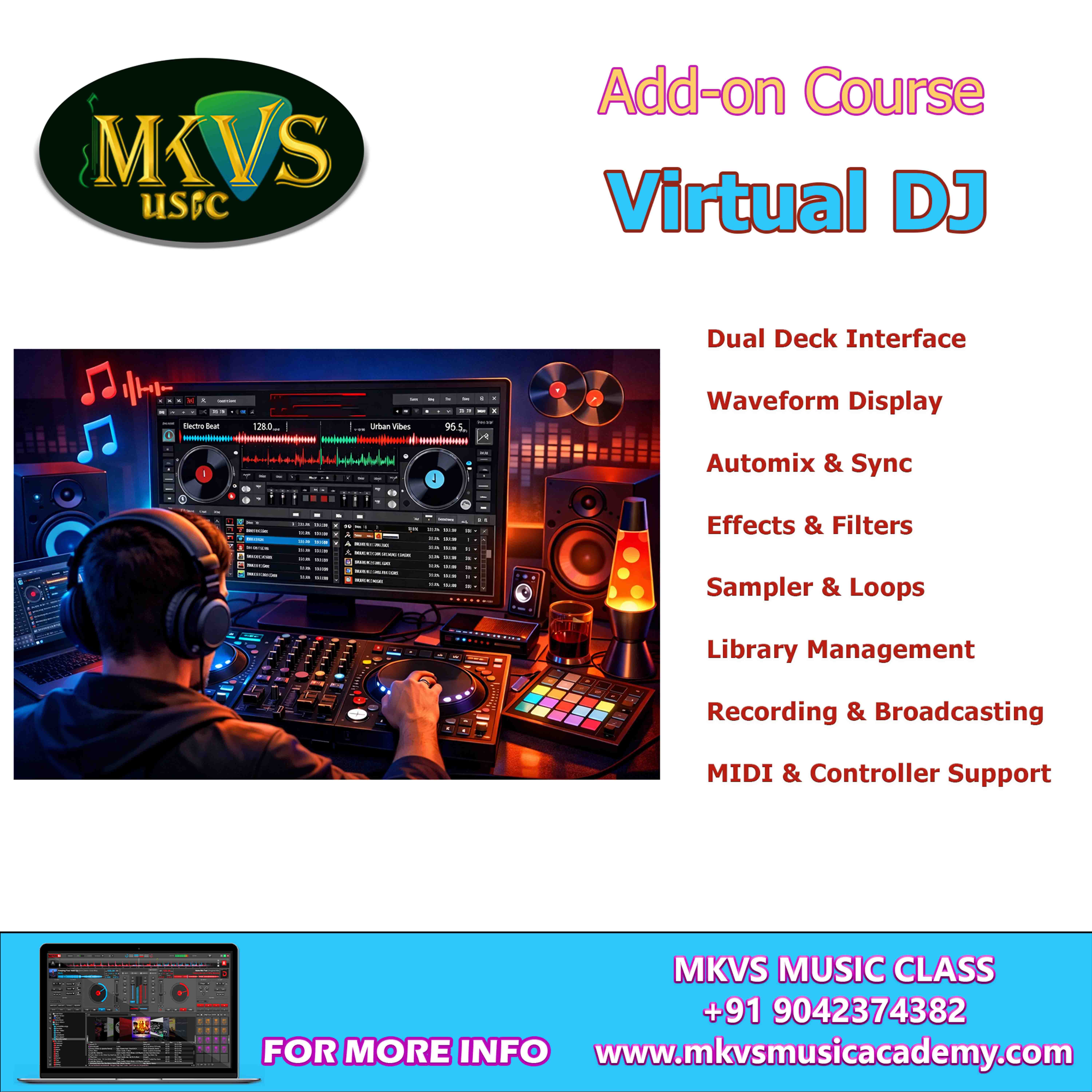 Virtual DJ Is A Powerful DJ Software Used For Mixing Music, Creating Live Performances, And Managing Digital Music Libraries. Learning Virtual DJ Enables Users To Mix Audio Tracks Seamlessly, Apply Real-Time Effects, Sync Beats Automatically, And Perform Professional DJ Sets For Events, Clubs, And Online Streaming.
