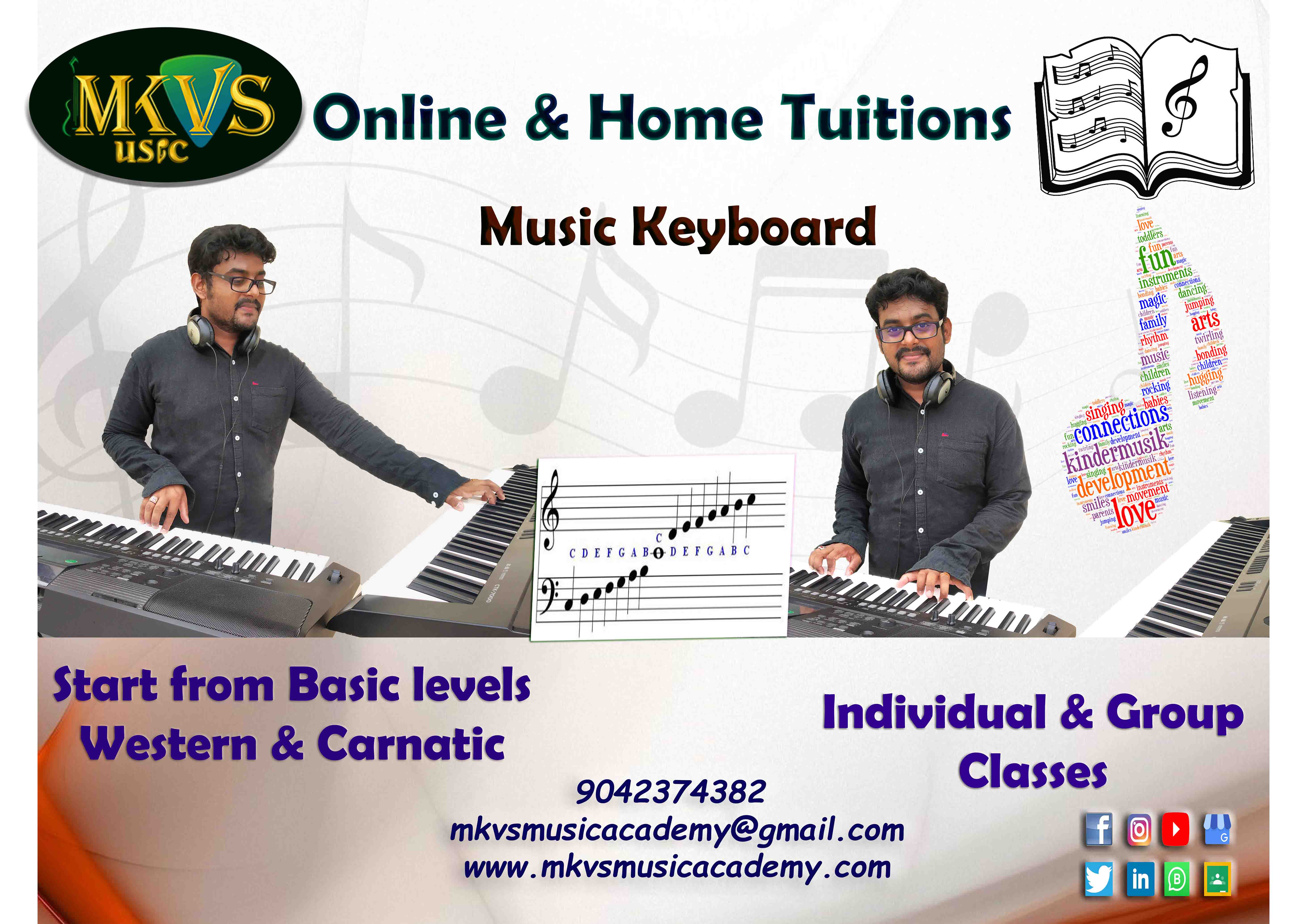 Founded by MK. Vibindas, MKVS Music and Multimedia Arts Academy is a creative hub dedicated to genuine, disciplined, and joyful learning in music and the arts. Our mission is to provide high-quality, structured music education that not only builds skill but also nurtures creativity, relieves stress, and promotes emotional well-being in every student. We believe music and multimedia arts are powerful tools to express oneself, explore imagination, and create happiness.